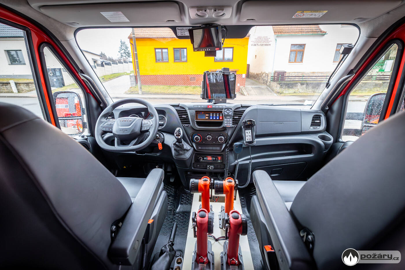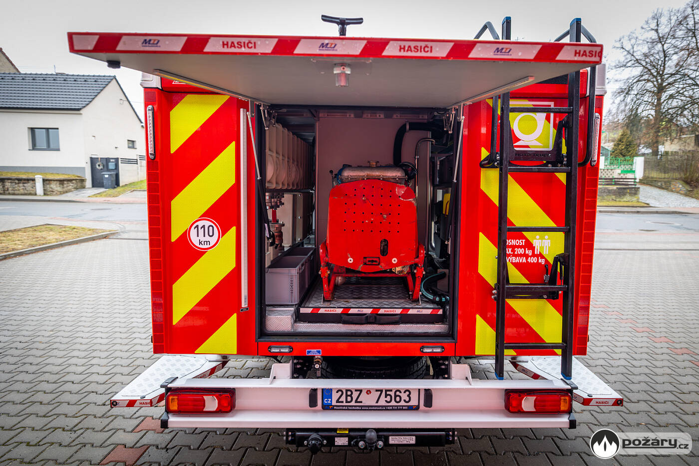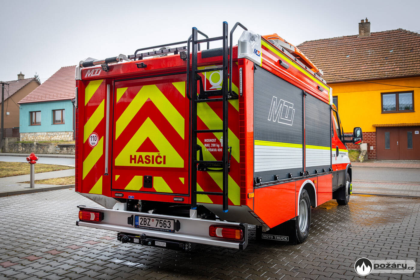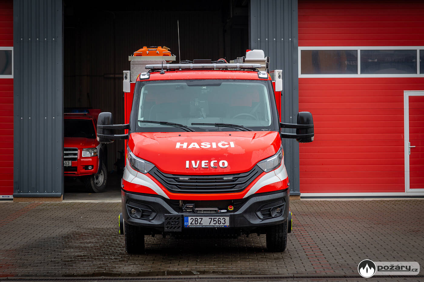 Iveco Daily je dlouhé 6 750 mm, široké 2 250 mm a vysoké 2 550 mm. Požární vůz je zahalen do červeného odstínu RAL 3020.Rychlý kontakt