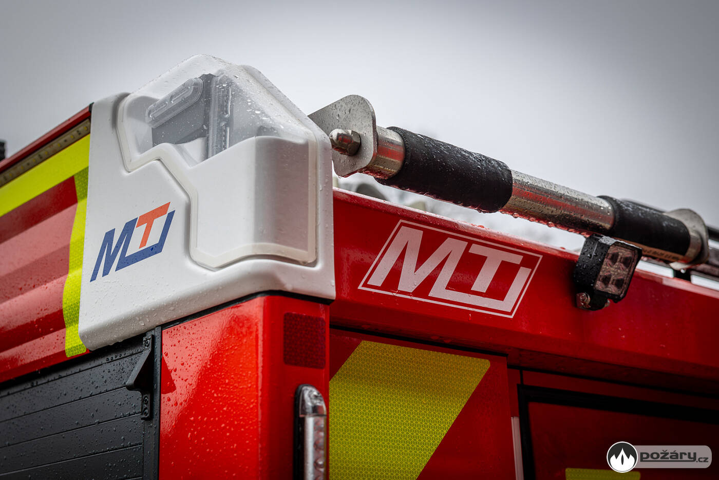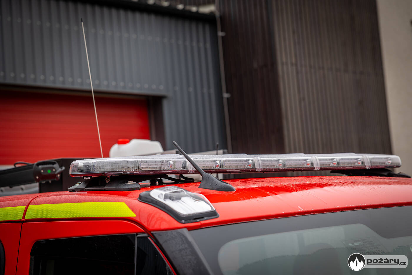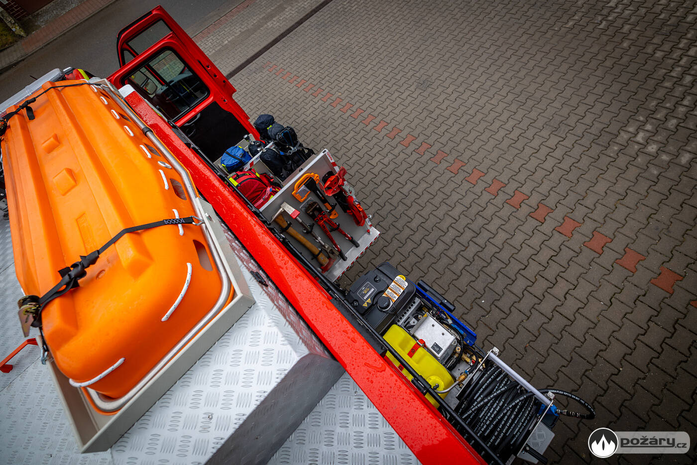 Na střeše vozidla je uloženo rozměrné požární příslušenství, včetně žebříku, savic, trhacího háku a hliníkového boxu pro další výbavu. Na víku boxu jsou uchycena transportní nosítka.
