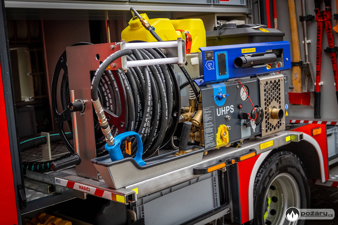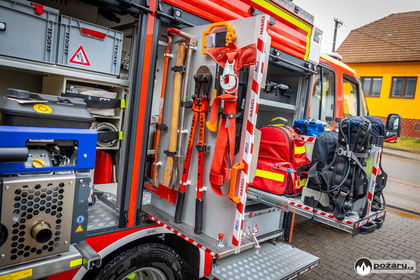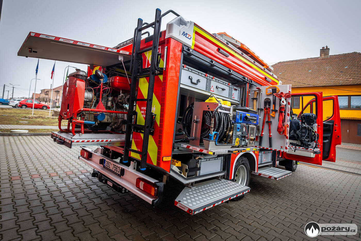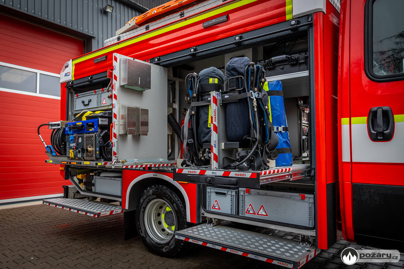 Karosérie účelové nástavby je samostatným konstrukčním celkem z plechů a profilů ze slitiny lehkých kovů, spojených technologií šroubovaných spojů, svařováním a lepením. Úložné prostory jsou kryty roletkami a výklopnými stupačkami. Ve středu nástavby je umístěna 1000litrová nádrž na vodu z vrstveného polypropylenu. Vůz je vybaven přenosnou motorovou stříkačkou a vysokotlakým hasicím zařízením Rosenbauer UHPS, které umožňuje zásah vodou i pěnou při tlaku 100 barů, se spotřebou 38 litrů za minutu a délkou hadice 60 metrů.Místo zásahu osvětluje pneumaticky výsuvný stožár s LED světlomety o celkovém světelném toku 20 000 lumenů. Dvojice pracovních LED světlometů s magnetickým uchycením je rovněž připravena k využití.