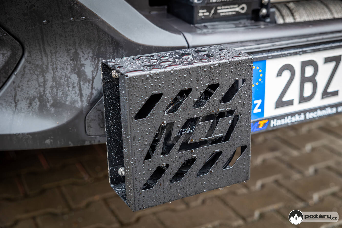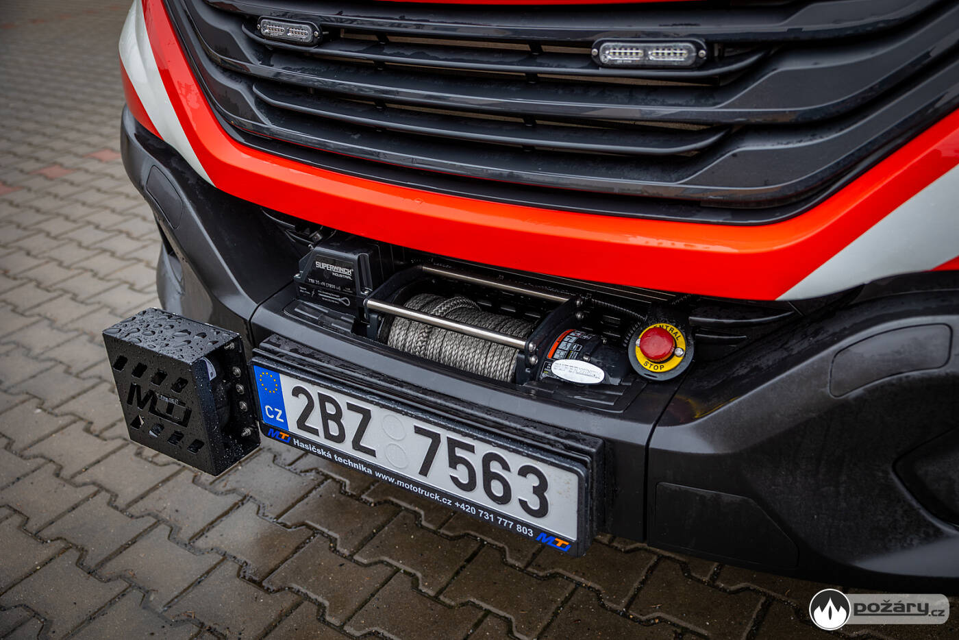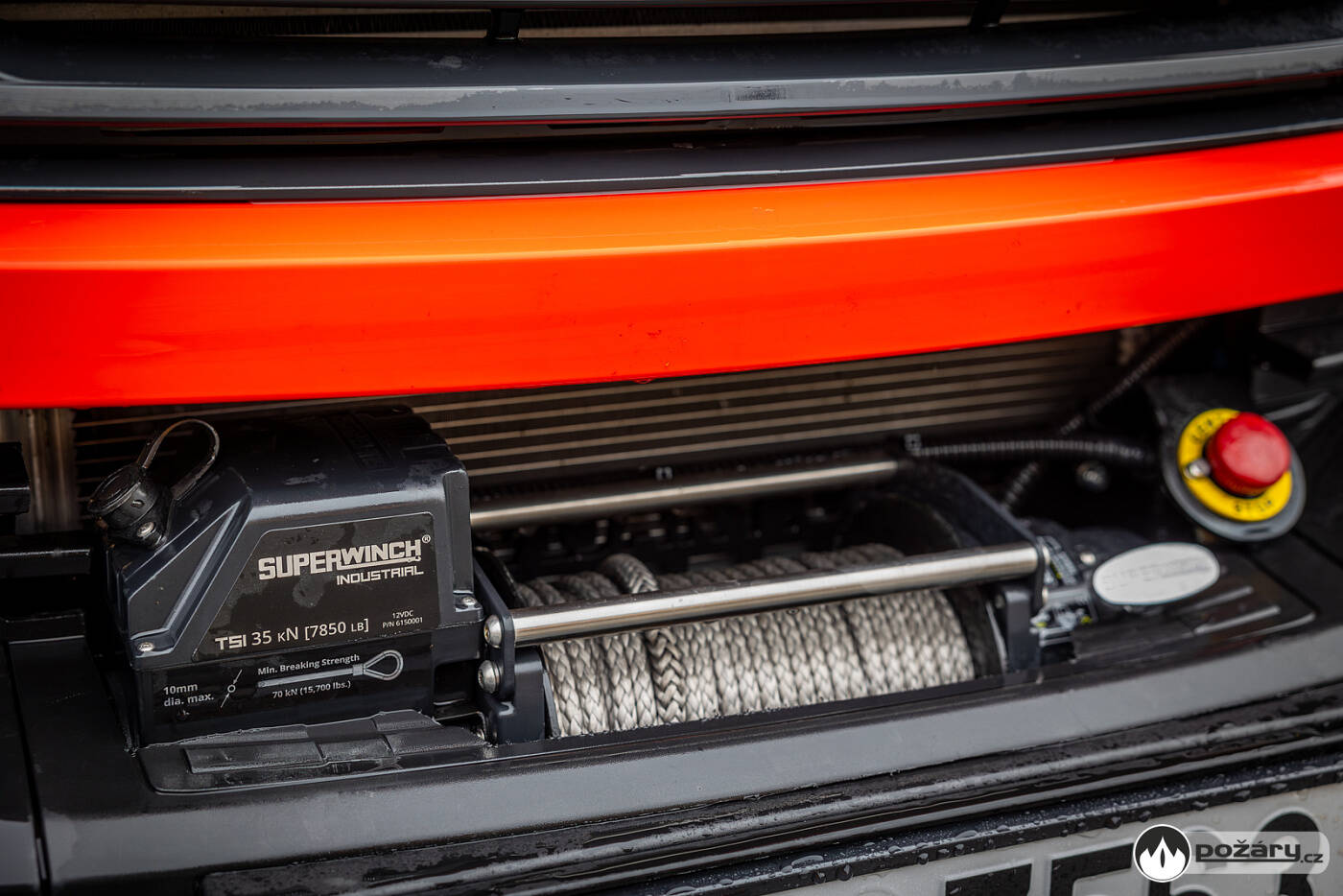 Elektrický lanový naviják Superwinch TS35 PRO 12V syntetic je umístěn v přední části vozu a jeho tažná síla dosahuje 35 kN a navíc disponuje jištěním proti přetížení.