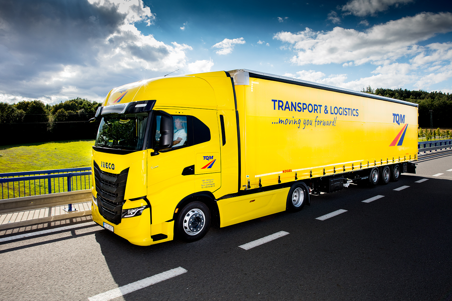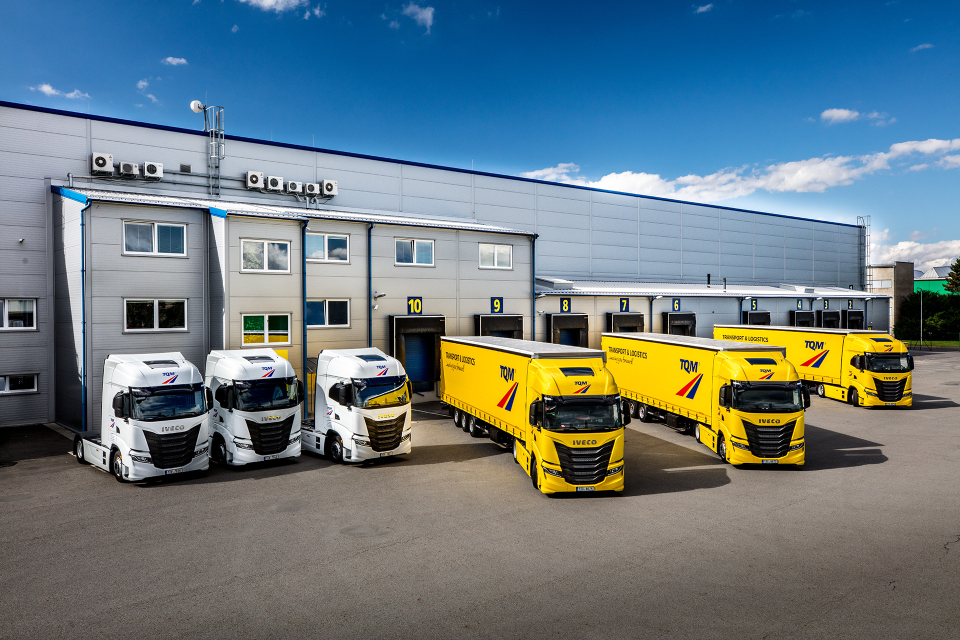 Flotila dvanátci moderních tahačů IVECO S-WAY již slouží ve společnosti TQM z Opavy. Šest tahačů převzala společnost TQM - holding s.r.o. v tradiční žluté barvě, z toho čtyři v provedení „lowdeck“, zbylé vozy v bílé barvě s klasickým podvozkem.