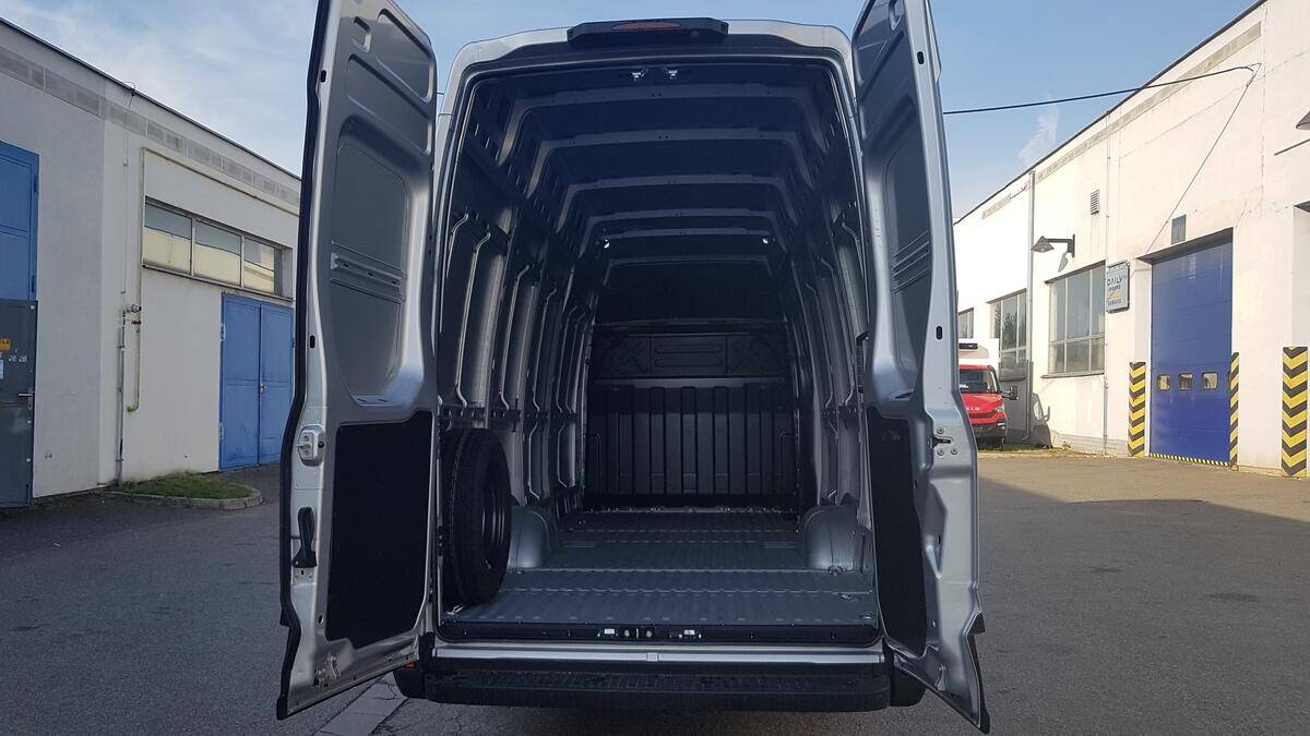 vysoká střecha vv2,1m, horní odkládací polička, zesílená zadní pera, kožený volant,