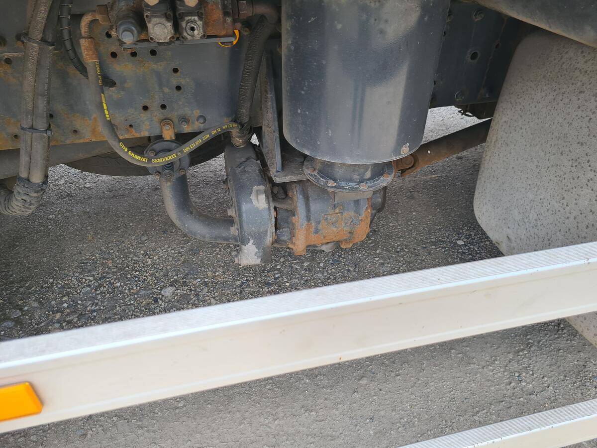 přepravník volně ložených hmot, svítí závada IC, pravá strana zvedačky sjeté pneu, převodovka 5řadí přes zuby, 7,8 jde zařadit velmi těžce, vozidlo je pojízdné,,