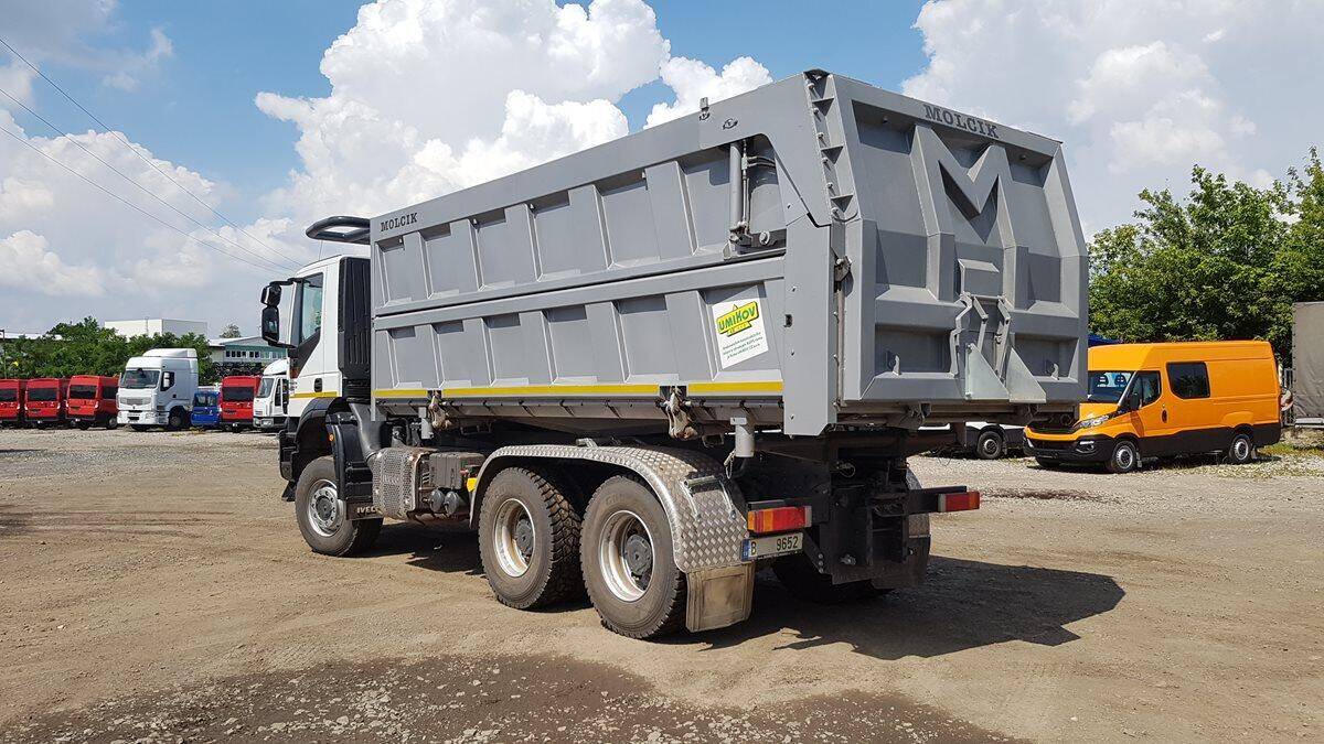 DEMO VOZIDLO. Nosič výměnných nástaveb. Rozměry sklápěcí S2 nástavby 5800mm x 2550 x 1600mm(20m3) s nástavky 2300mm(29m3). Zadní čelo a levá bočnice hydraulicky ovládaná. Prodejce p. Pavelka 724270270 nebo pavelka@agrotec.cz. Vozidlo lze dodat i s novou stavební nástavbou.